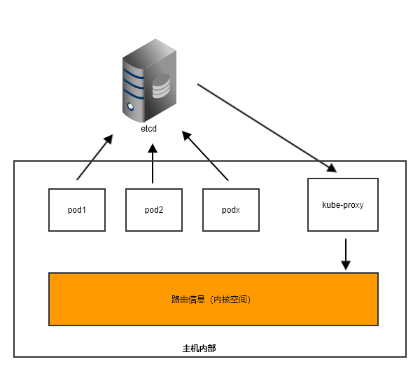 同时由于集群内部服务的 pod 个数是动态增减的,这样才能灵活应对流量的激增和回退。所以图 2.3 中的路由表信息如果写死肯定不能应对这种情况。kubernetes 中使用 etcd 来存储数据,它通过 raft 一致性算法来保证数据一致性。一个关联的 pod 有增减之后,就会更改 etcd 数据,kubernetes 中的 kube-proxy 程序会自动监听节点变动,然后把同步修改主机上的 iptables(或者 IPVS 信息)。
